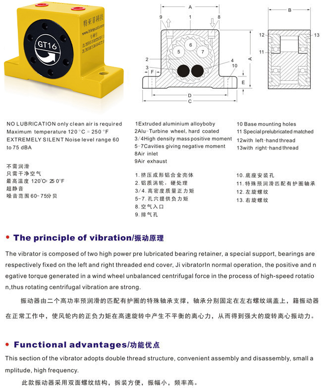 佛山市特亞菲科技有限公司成立為2011年4月,是一家集科研、設(shè)計、制造高端氣動振動器、電動振動器、線性振動器、非標(biāo)振動器、 非標(biāo)自動化設(shè)備的高科技技術(shù)型企業(yè), 一直致力于為粉體工程、管路輸送、漏斗下料、模具搗實(shí)、實(shí)驗檢測、振動篩選、機(jī)器人等各行業(yè)所需的振動解決方案。期下?lián)碛? “特亞菲”、“飛宇”﹑“菲帝”三大品牌,已獲得國家授權(quán)專利23項,其中發(fā)明專利2項,歐盟 CE 產(chǎn)品出囗認(rèn)證一項,還有多項專利正在申報中。自本公司成立以來,一直堅持:“質(zhì)量鑄就品牌,誠信鑄就商譽(yù)”的經(jīng)營理念,在產(chǎn)品開發(fā)、制造工藝、質(zhì)量控制、售后服務(wù)的規(guī)范管理方面有著較為成熟的體系,目前累計國內(nèi)外合作客戶達(dá)到2000多家,贏得廣大客戶的高度評價和青睞。