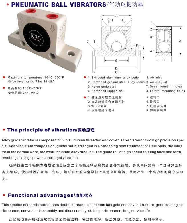 應(yīng)用行業(yè): 料倉(cāng)破拱 振動(dòng)篩 管道下料 鑄造脫模 輸送等